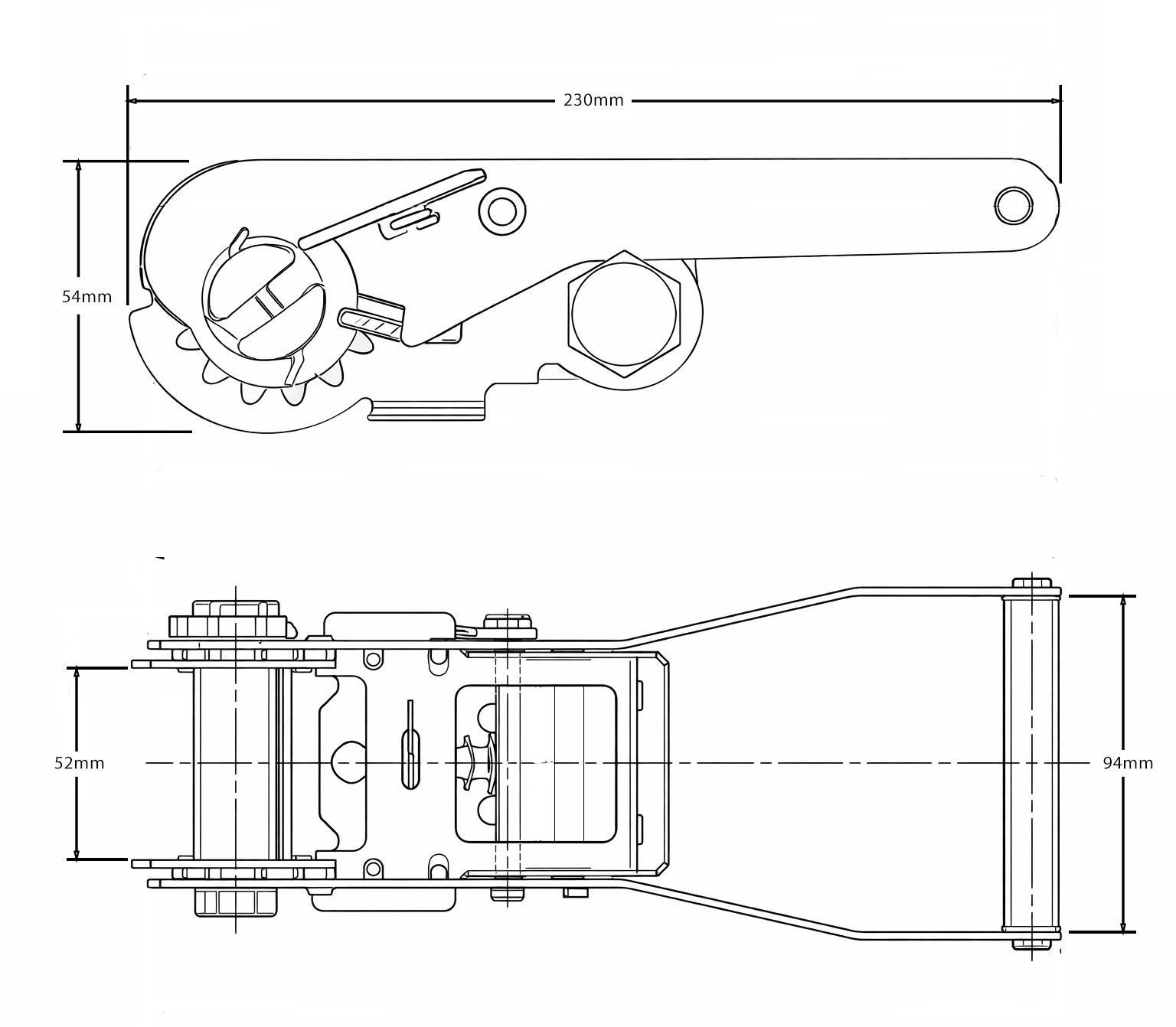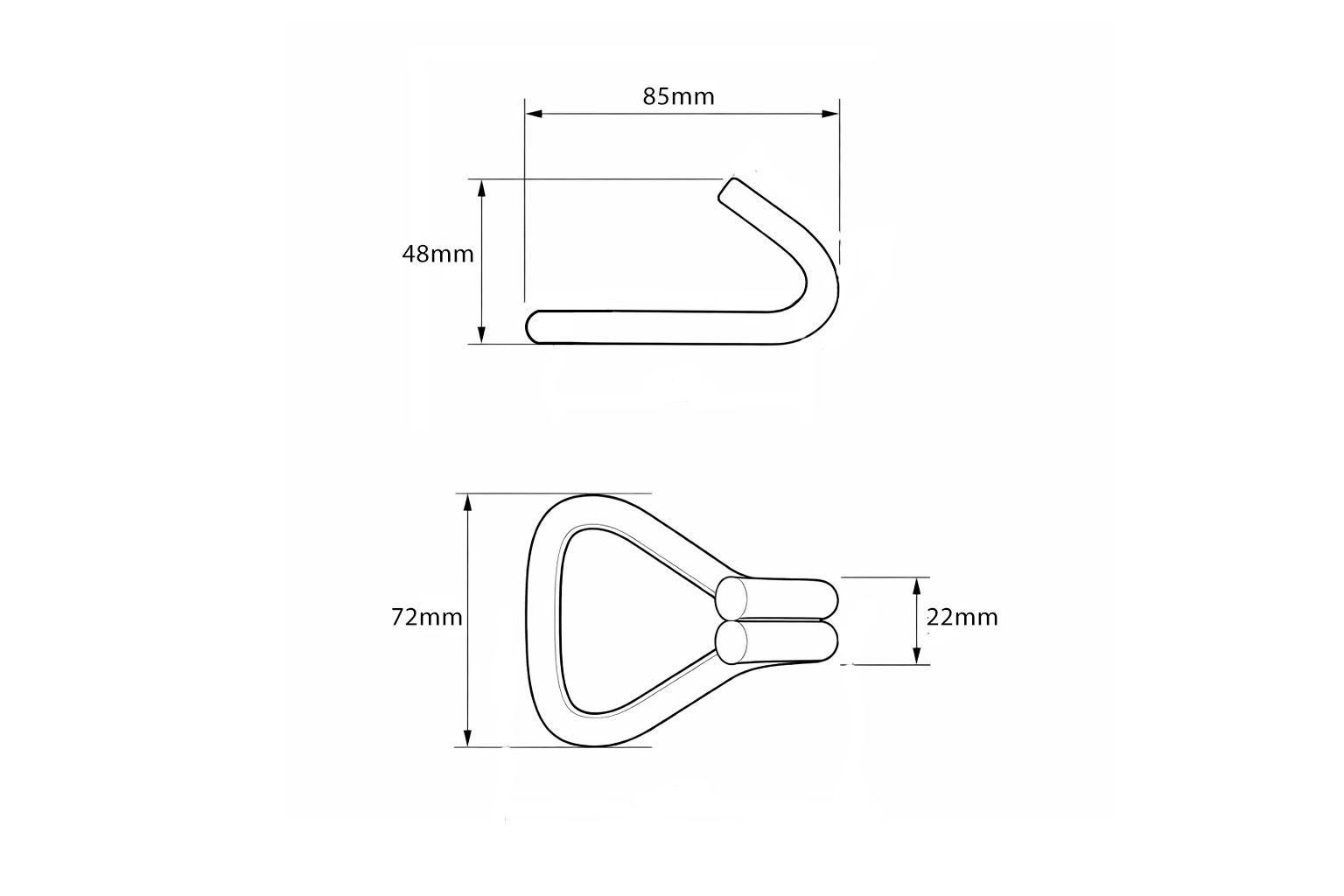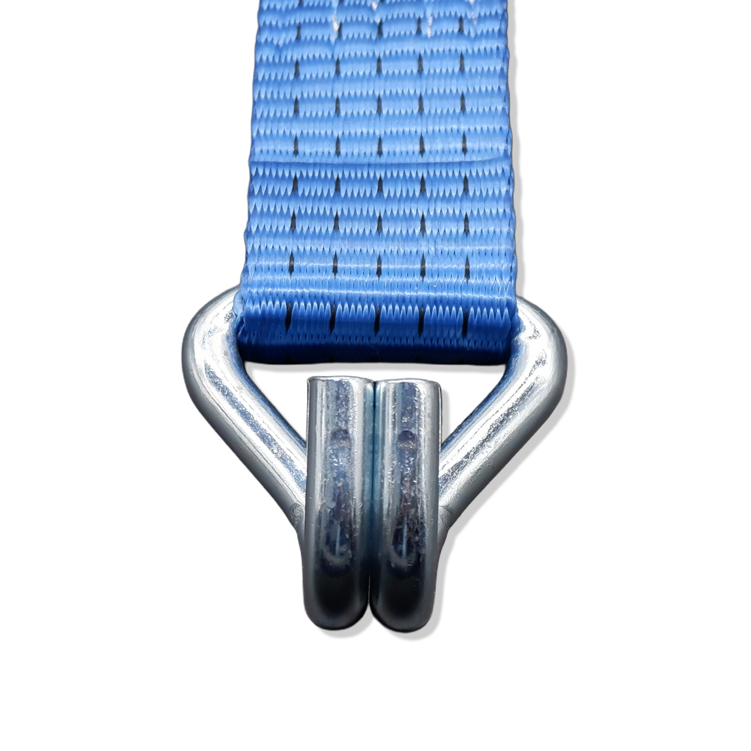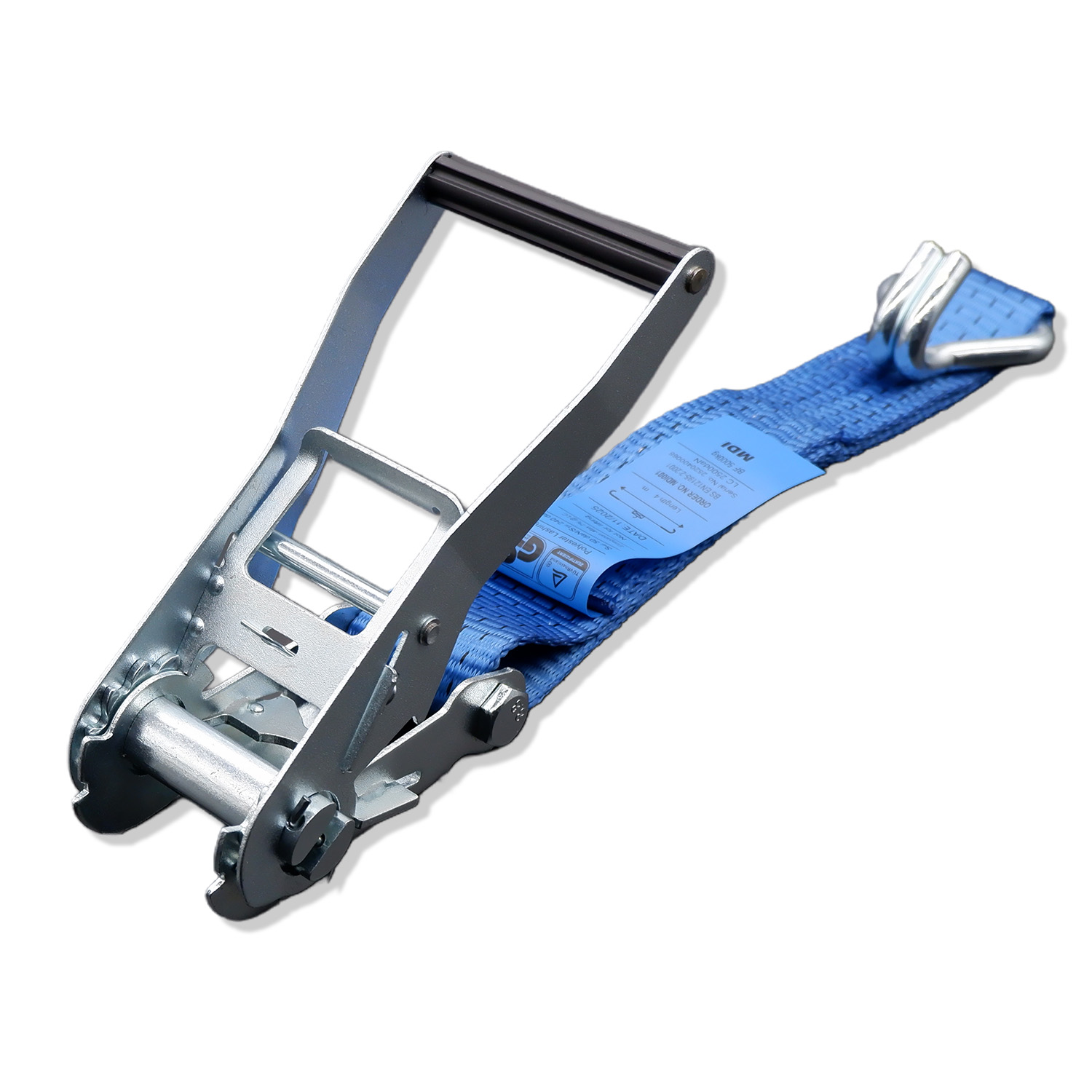 50mm wide polyester webbing ratchet strap , terminated with a claw hook at each end.